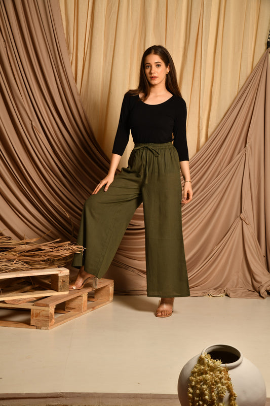 Olive Green Flared Palazzo Pants