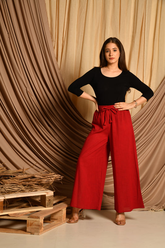 Maroon Flared Palazzo Pants