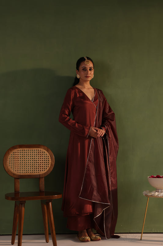 Brown Angrakha Kurta Set