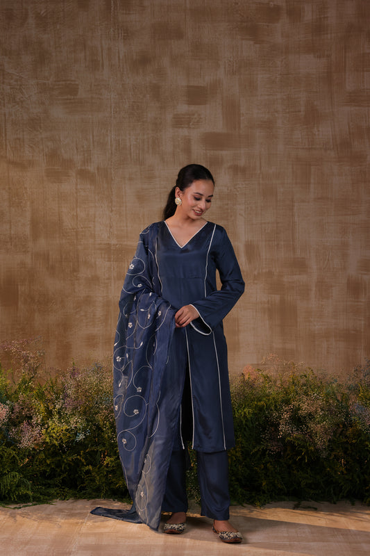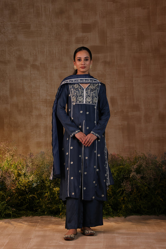 Blue Panelled kurta set