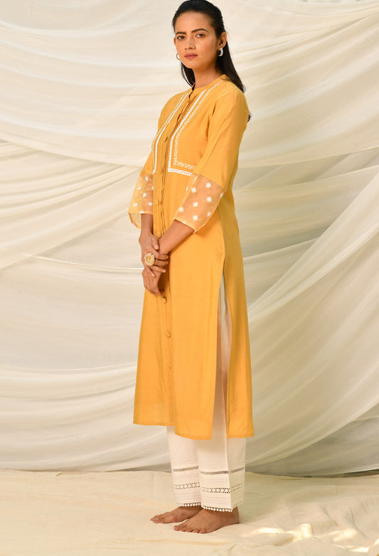 Mustard Pure Viscose Long Kurta Set With Pintucks