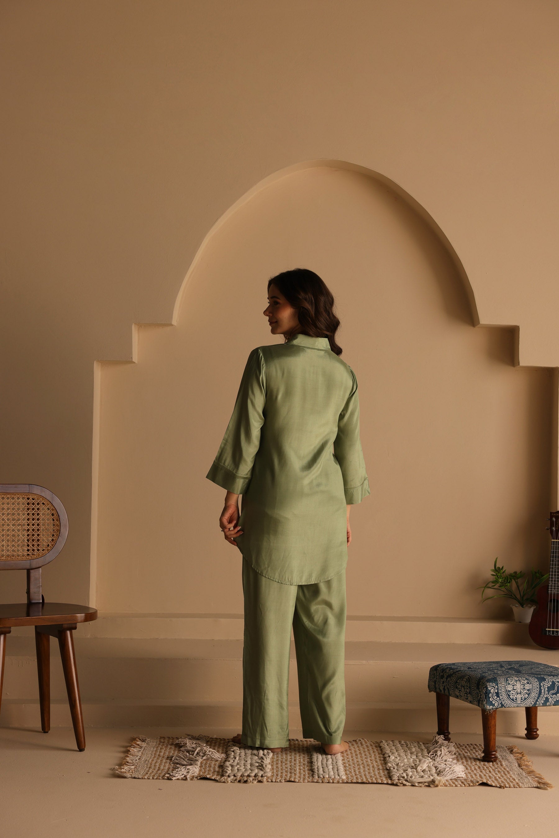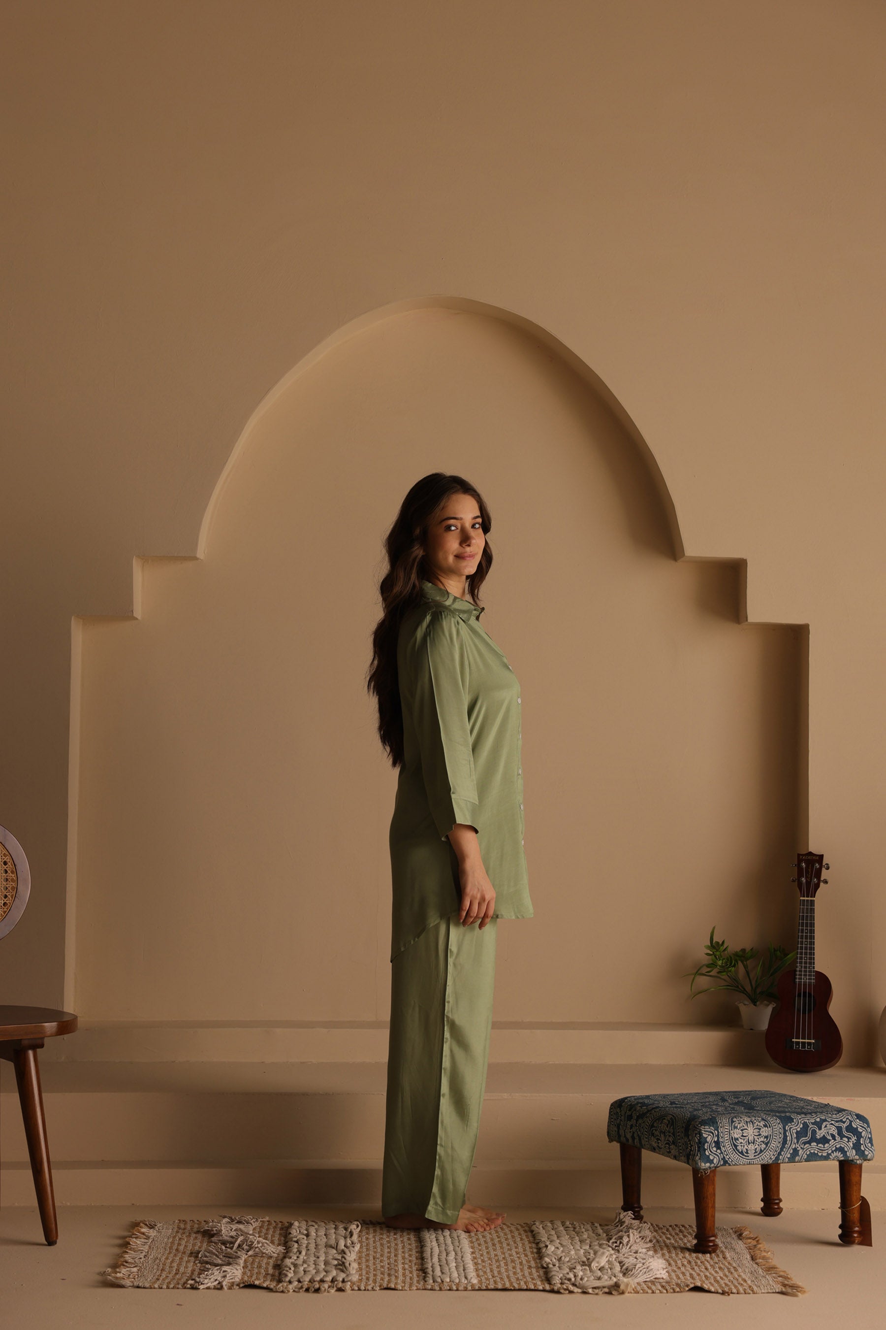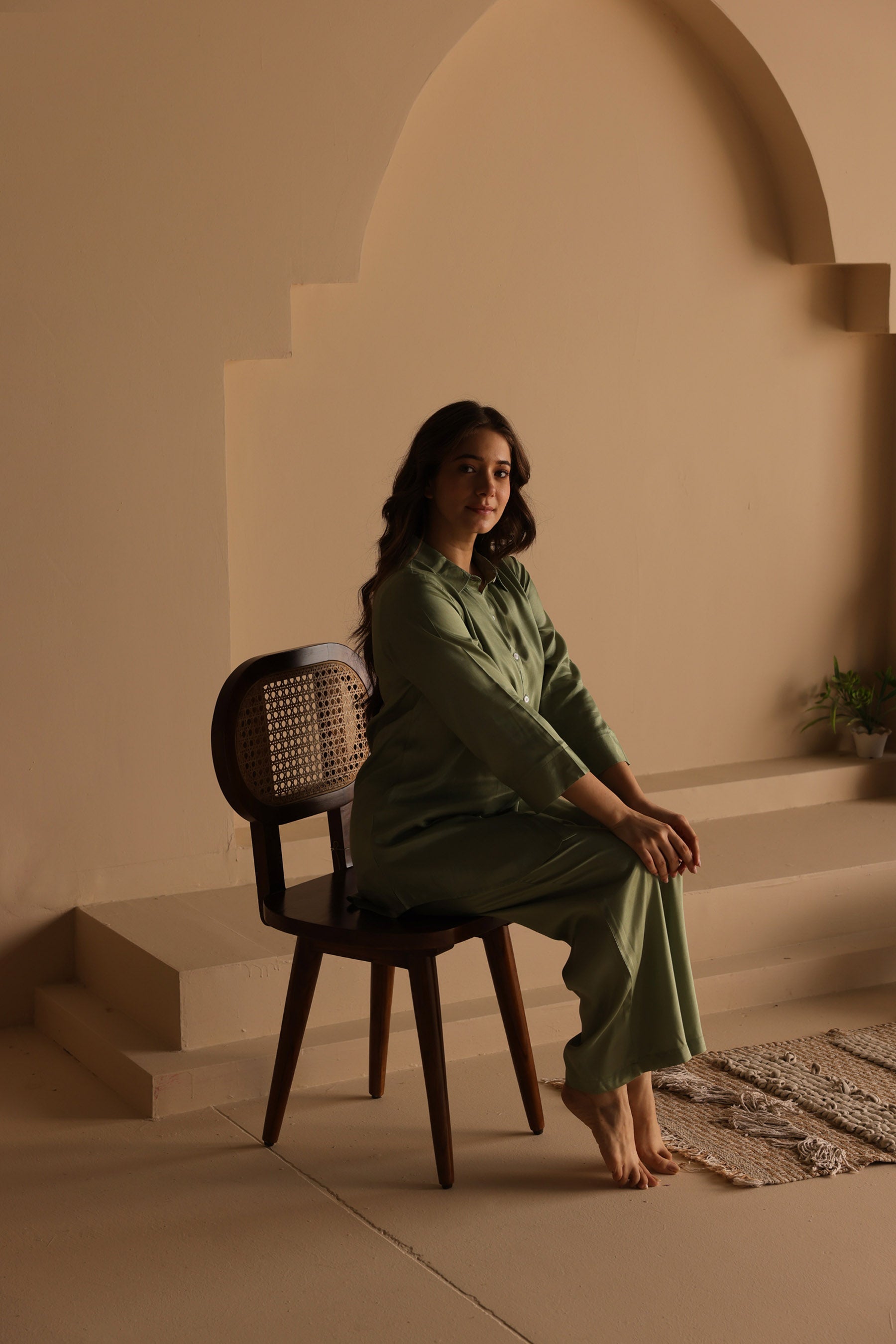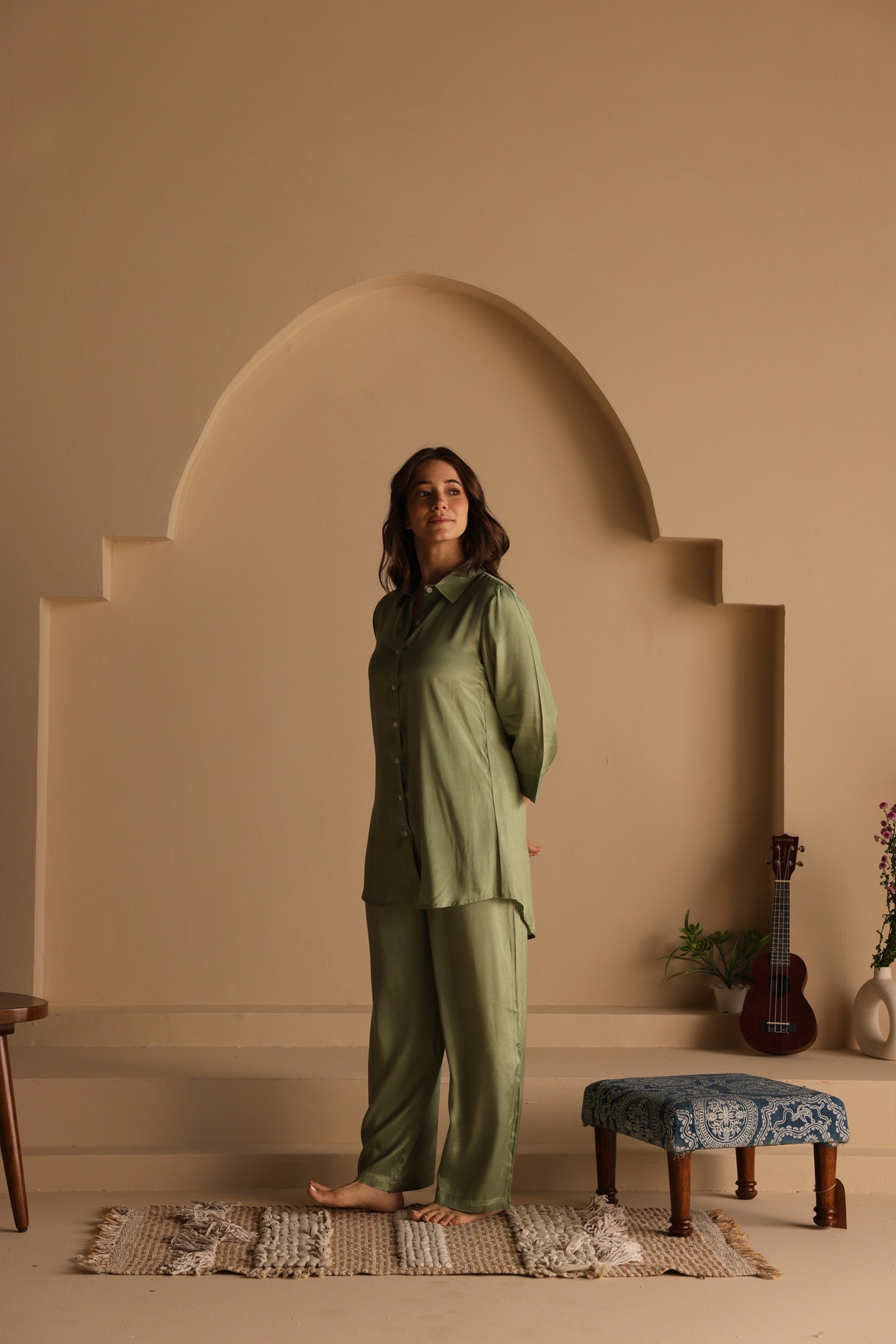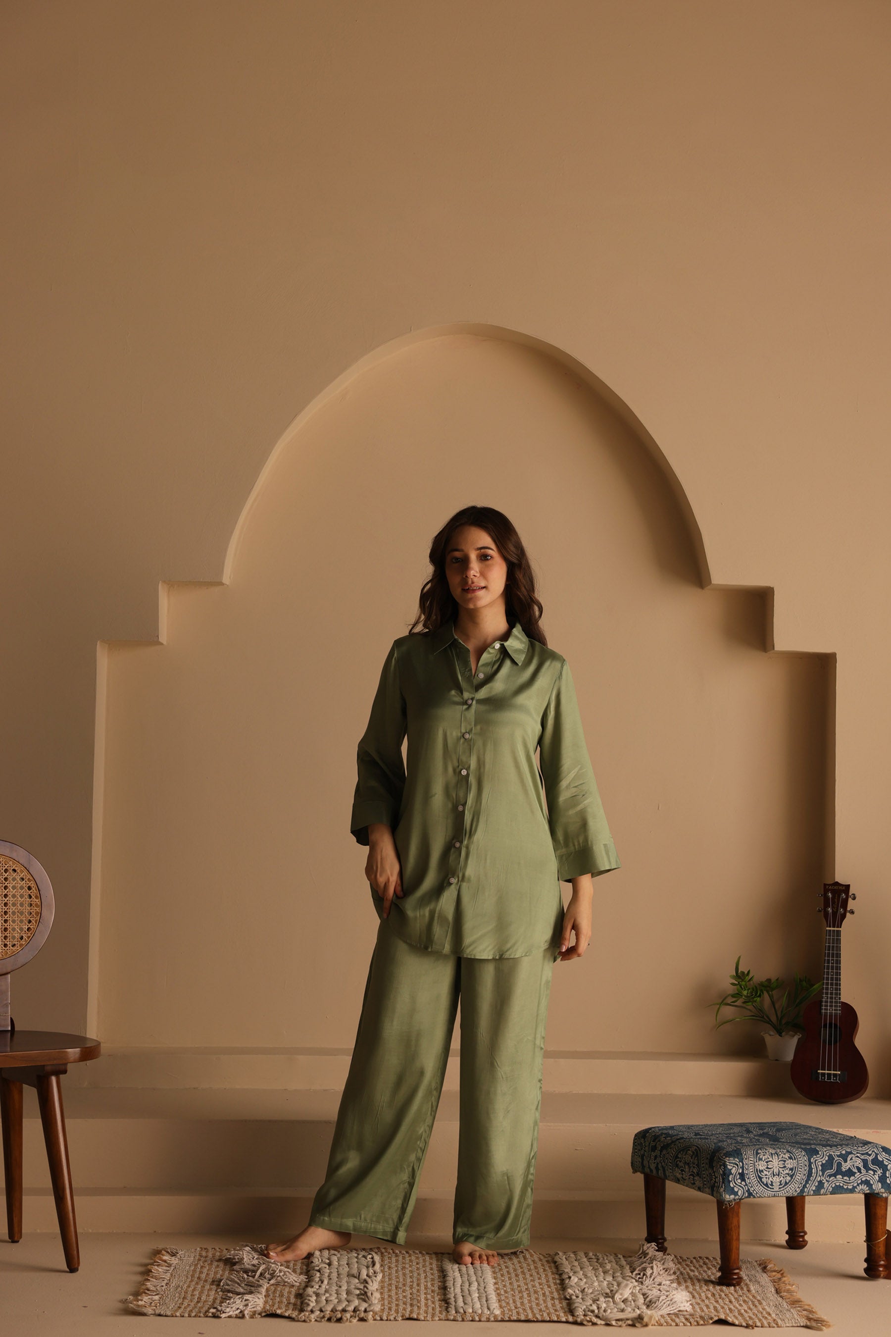 Dahlia Sage Set is crafted from high-quality muslin silk, providing a smooth, cool sensation against the skin. While the loose, flowing fit ensures maximum comfort. Perfect for lounging or sleeping in style.
