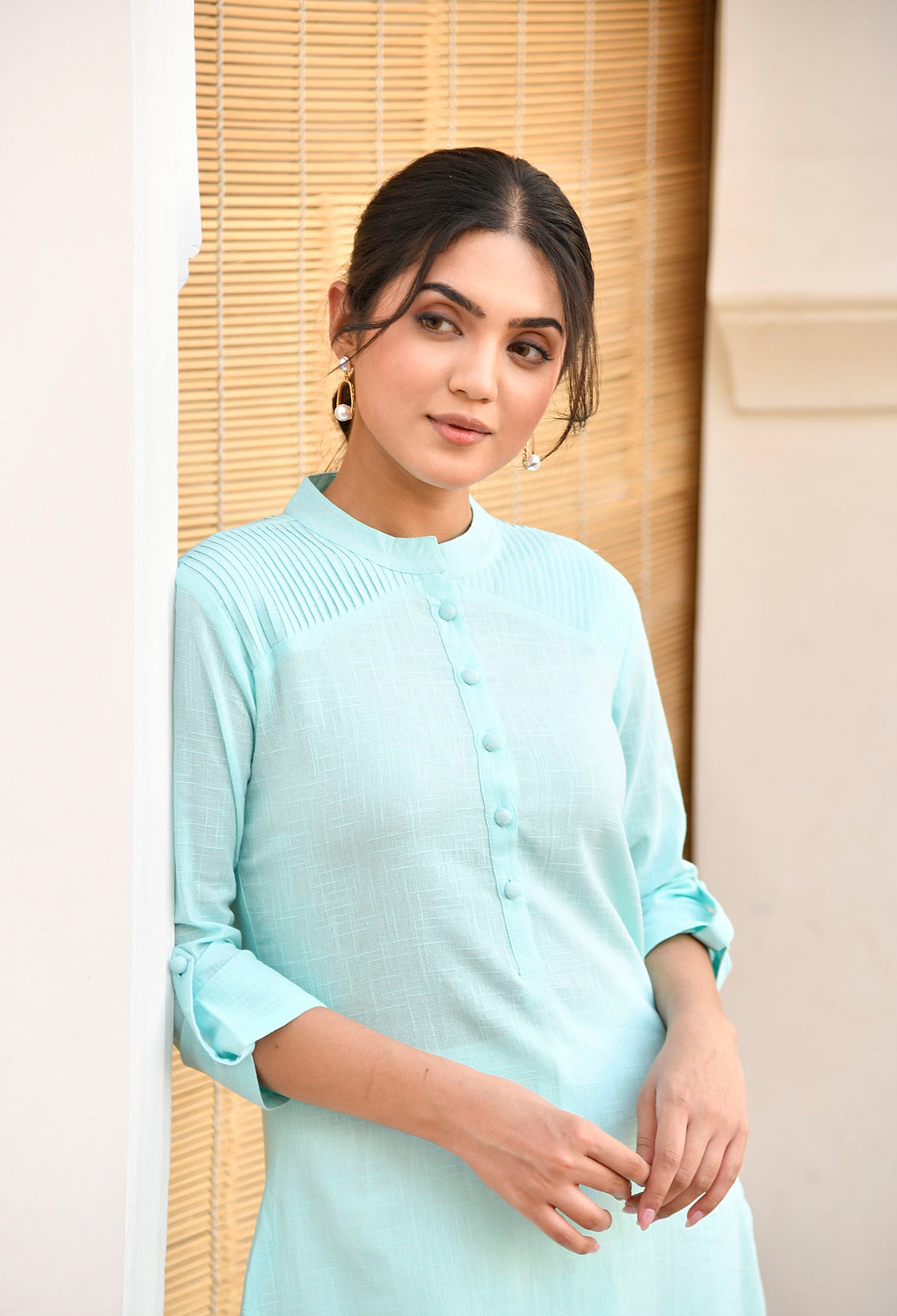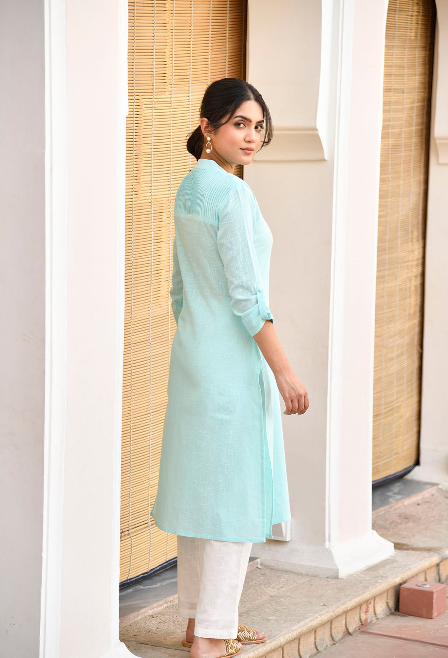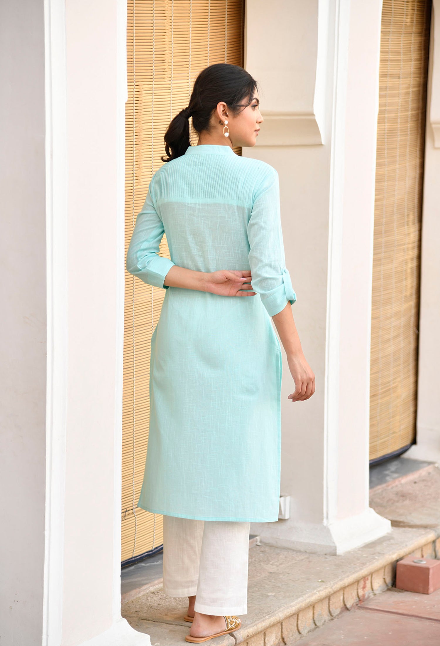 • Pattern: Straight Fit kurta with Pintucks details on the shoulders.