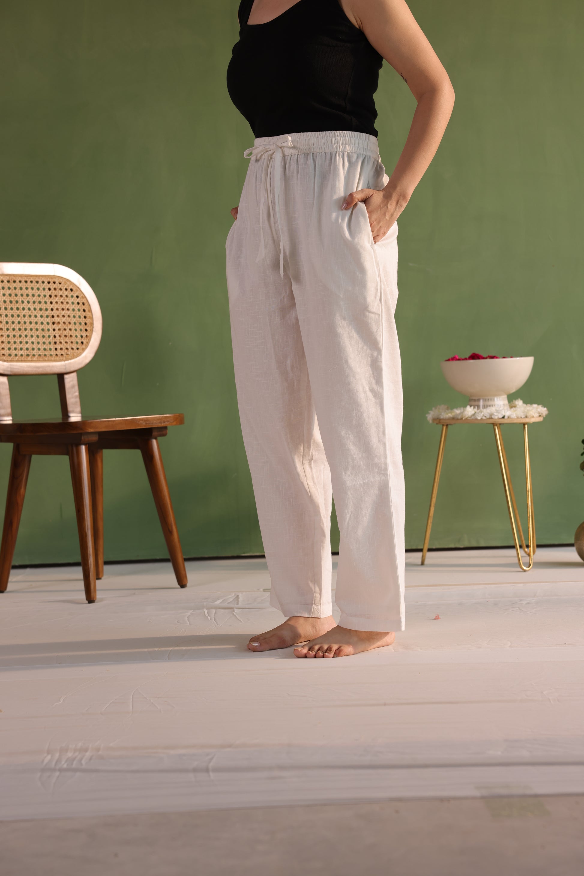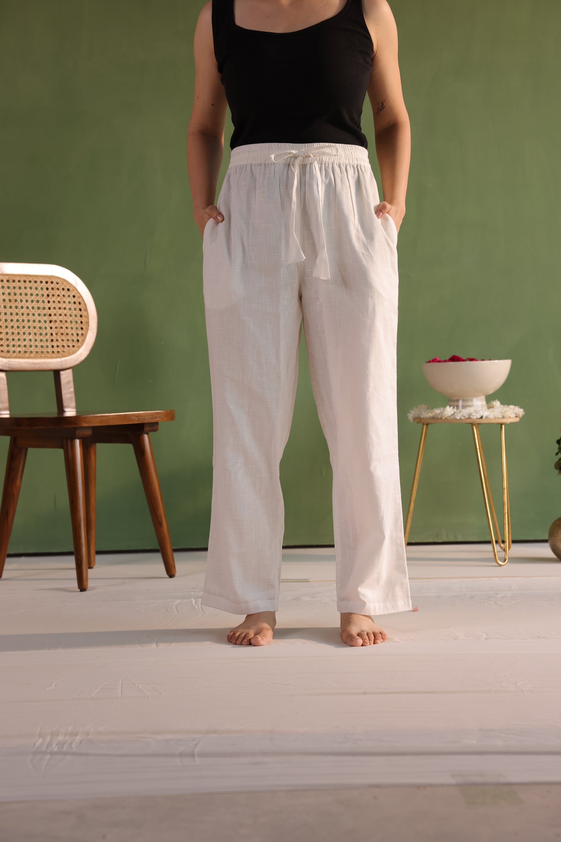 • Pattern: Straight fit cotton pant with elasticated belt and drawstring.
